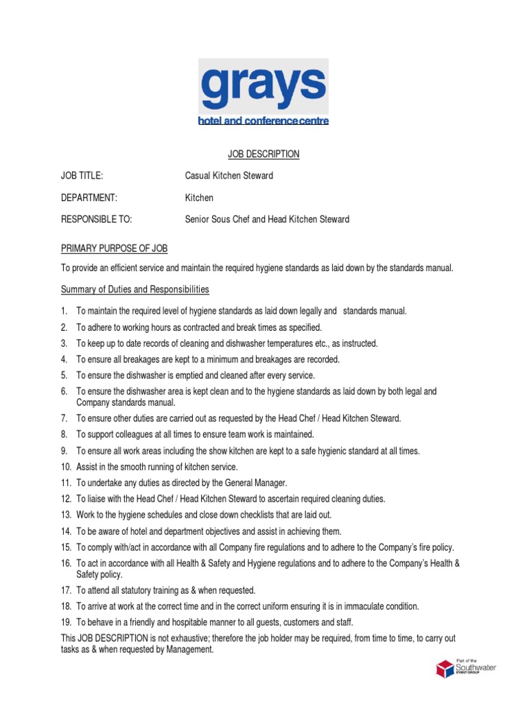 If you need more job interview materials you can reference them at the end of this post. In this post you can reference some of the most common interview questions for a kitchen staff interview along with appropriate answer samples. These questions and answers do not represent any organization school or company on our site. Kitchen steward job description job description.